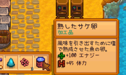 イクラの効果はスタミナ回復、水中呼吸、マジカ上昇、マジカ回復。